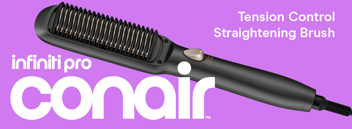 Get the smooth, shiny looks you love quickly and easily with the Conair Tension Control Straightening Brush. Designed with V-shaped bristles that gently grip hair as you style, this versatile, salon-caliber tool features anti-scald heated plates that ensure better contact with hair for smoother results with less damage. Choose from 5 LED heat settings to vary the temperature up to 390°F, depending on your hair type. Ideal for all hair types, from thin and fragile to thick and textured, the brush heats up in seconds, so there's less waiting and more styling. Show your hair some love with the styling essential that glides through it for a flawless finish, leaving it healthy-looking and manageable with silky, mega-watt shine.